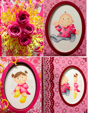 Hier nog wat foto's van dichterbij. En op die rechts onder kan je zien hoe de baby voor het meisje schuift wanneer je de kaart opendoet.