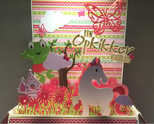 Hier zie je een kaartje met de felle kleuren en eentje met de pastelkleuren.